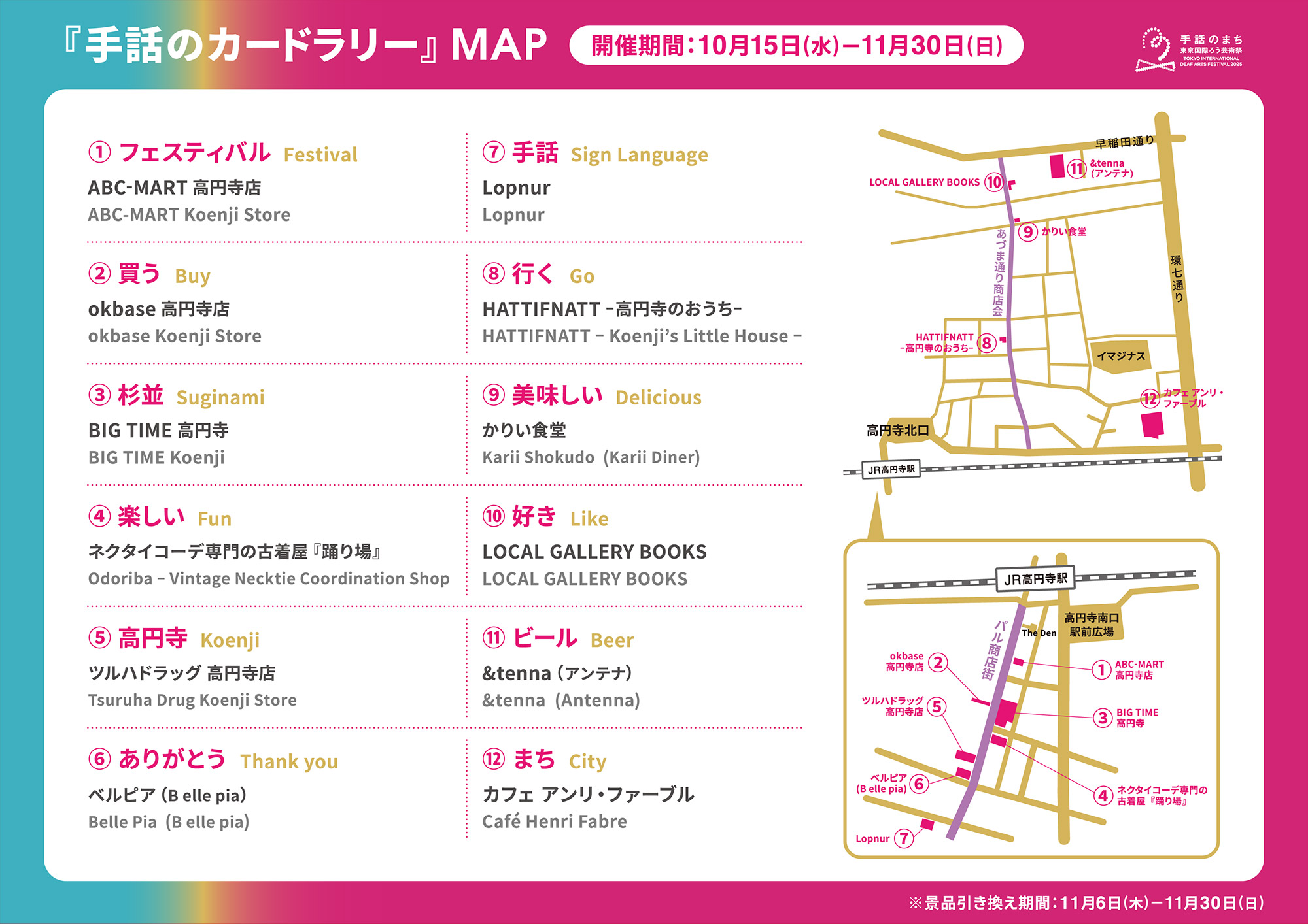 | 入手できる手話カードの種類 | 店舗名 | 住所&電話 | 営業時間&定休日 | SNS |